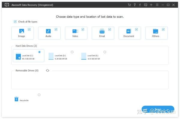 接下来,您可以选择的另一个是 Aiseesoft Data Recovery。Aiseesoft Data Recovery是一款专业的数据恢复软件,可以帮助您从电脑、硬盘、闪存盘、存储卡、数码相机中恢复几乎所有已删除/丢失的文件,如照片、文档、电子邮件、音频、视频和支持您可以使用这款强大的数据恢复工具无论是数据丢失还是误删、清空回收站、RAW硬盘、RAW分区、分区丢失、操作系统崩溃、开机问题或其他原因造成的数据丢失,该工具都能轻松找回数据。这款全面的数据恢复软件使您能够根据特定的数据类型和硬盘驱动器扫描和查找已删除的数据。Aiseesoft Data Recovery 具有快速完成数据扫描过程的功能。并且软件提供了“深度扫描”功能,确保您找到所有被删除的文件。更重要的是,该软件非常安全。当您找回丢失的图片、音频、视频、文档或电子邮件时,它不会修改任何这些数据并将这些数据暂时存储到任何驱动器以确保数据的安全。