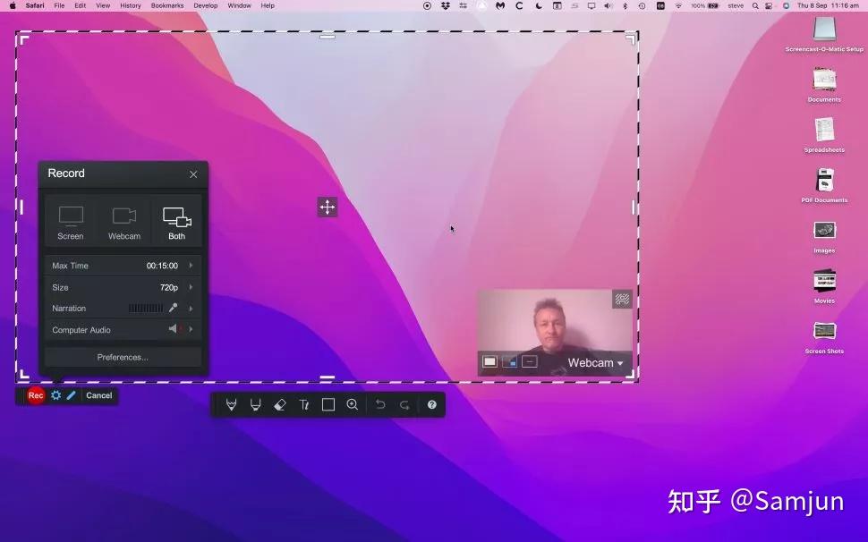 您还可以在录制屏幕的同时录制网络摄像头以及外部音频。您甚至可以裁剪您想要录制的内容,或者只选择一个特定的窗口。